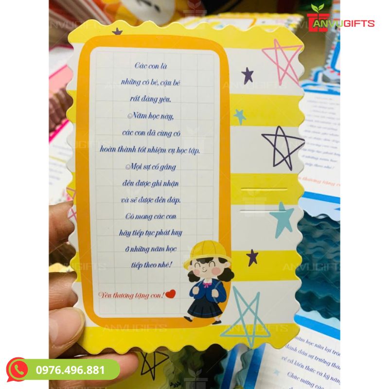 Đôi khi giá trị không nằm ở vật chất mà ở những lời gửi gắm. Một tấm thiệp viết tay chân thành sẽ khiến học sinh vô cùng cảm động.