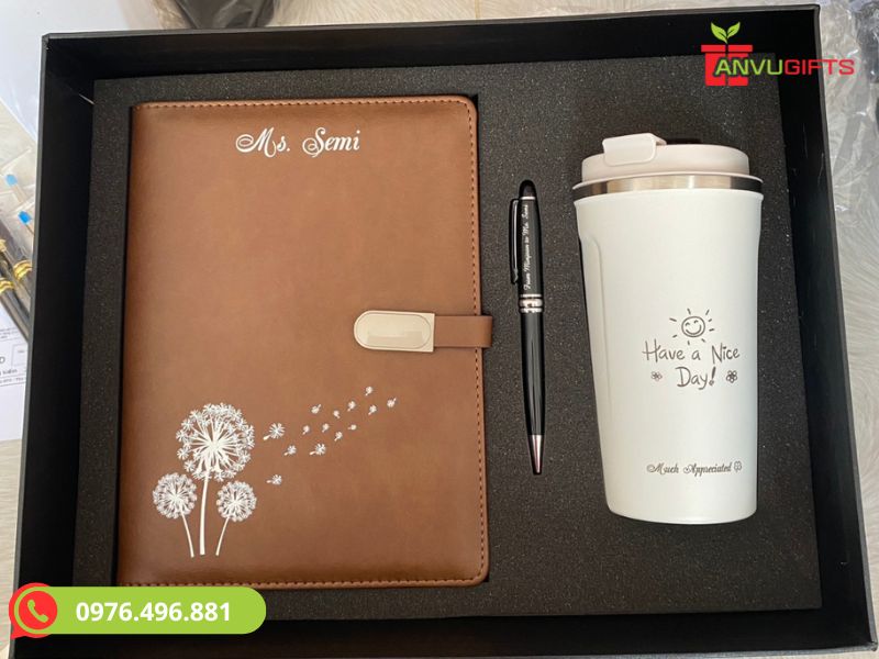 • Bộ quà tặng Giftset: Kết hợp giữa sổ da, bút ký và bình giữ nhiệt cao cấp. Đây là dòng quà tặng lưu niệm cho nam mang tính đồng bộ và chuyên nghiệp cao.